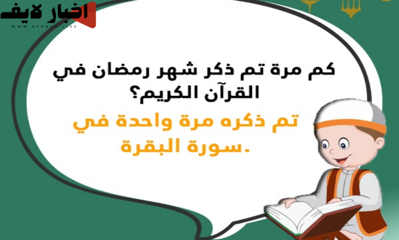 أسئلة مسابقات رمضانية وأجوبتها يرغب الكثير من الأشخاص في البحث عنها، وخاصة مع اقتراب شهر رمضان المبارك، وذلك لأن مثل هذه الأسئلة يتسلى بها الكثير من الأشخاص كما ترفع من ثقافتهم، لذا خلال موقع أخبار لايف سنتعرف على هذه الأسئلة وأجوبتها.