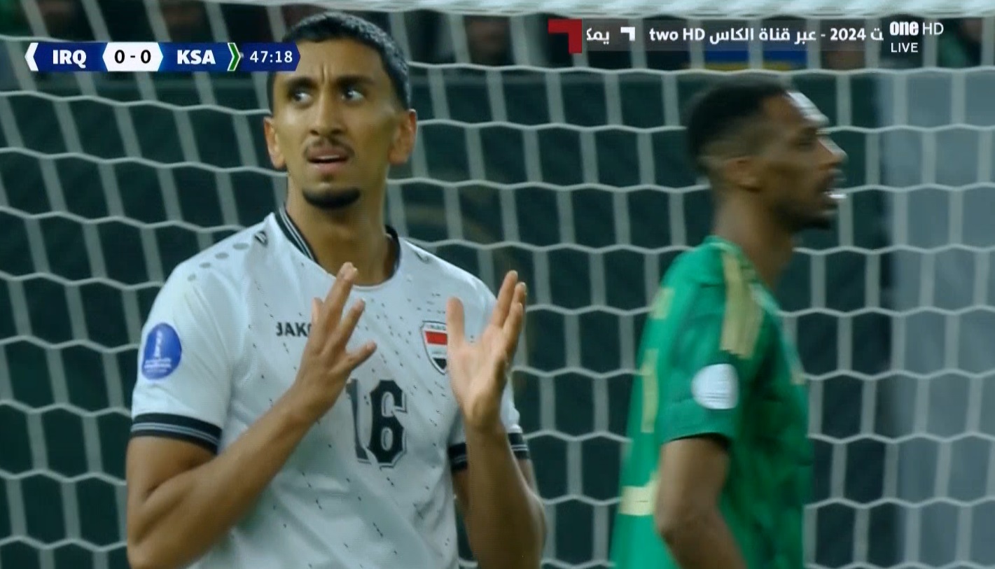 أمير العماري كاد ان يسجل هدف رائع للعراق امام السعودية بكاس الخليج