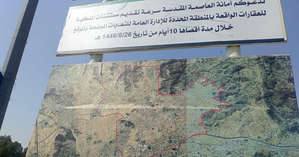 ناشد عدد من أهالي منطقة اللحيانية شرق مكة المكرمة أمانة العاصمة المقدسة تمديد المهلة المحددة لتقديم مستندات ملكية عقاراتهم، معتبرين أن الفترة الممنوحة التي لا تتجاوز عشرة أيام غير كافية لإنجاز الإجراءات المطلوبة، خاصة مع اقتراب شهر رمضان المبارك.