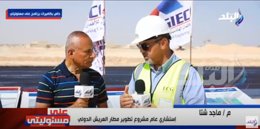 وأكد أن مطار العريش الدولي يتم تنفيذه بأيادي مصرية 100%، وهناك 1500 مهندس وعامل يقومون بتنفيذه، والمطار يوفر فرص عمل لأهالي المحافظة.