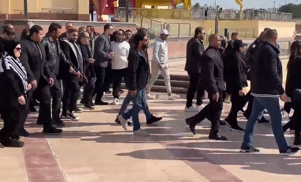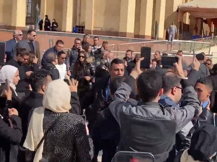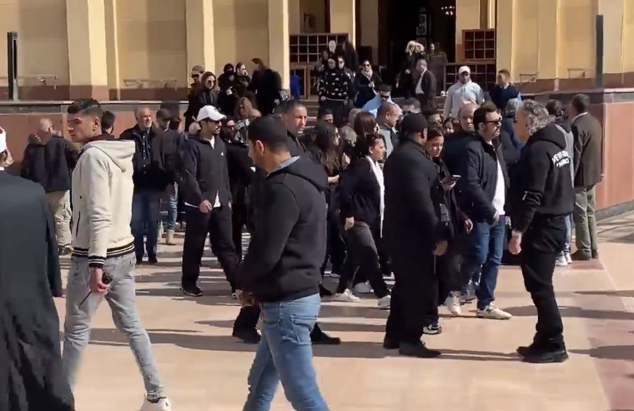 حرص الفنان أحمد العوضي على التواجد بجوار زوجته ياسمين عبد العزيز لمساندتها في هذا الموقف الصعب، حيث ظهر برفقتها منذ لحظة وصول الجثمان إلى المسجد وحتى انتهاء الصلاة.
