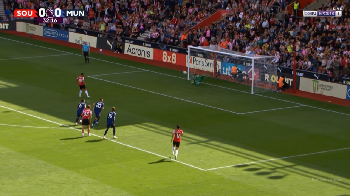 اونانا يتصدي لركلة جزاء في مباراة مانشستر يونايتد وساوثهامتون بالدروي الانجليزي