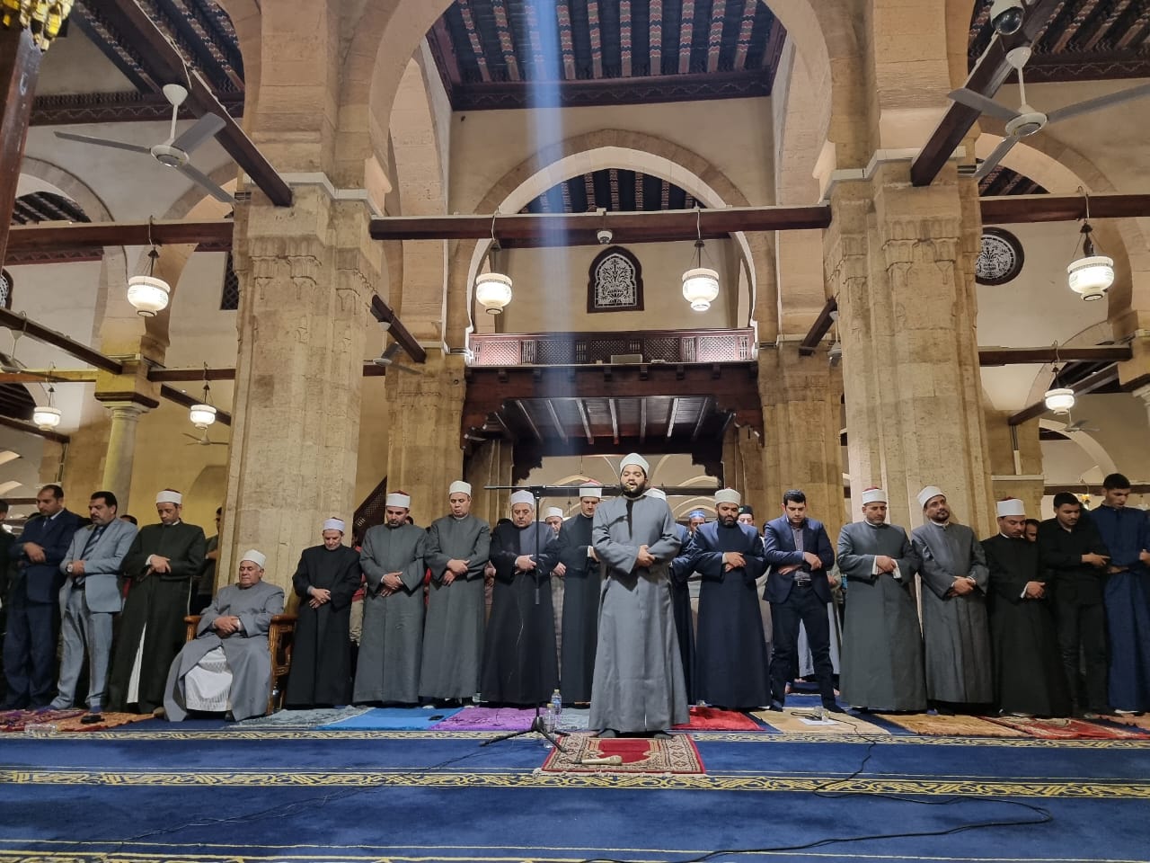 ويؤدي بالجامع الأزهر آلاف المصلين من مصر والعالم الإسلامي، صلاتي العشاء والتراويح، في الليلة السابعة من رمضان 2023.
