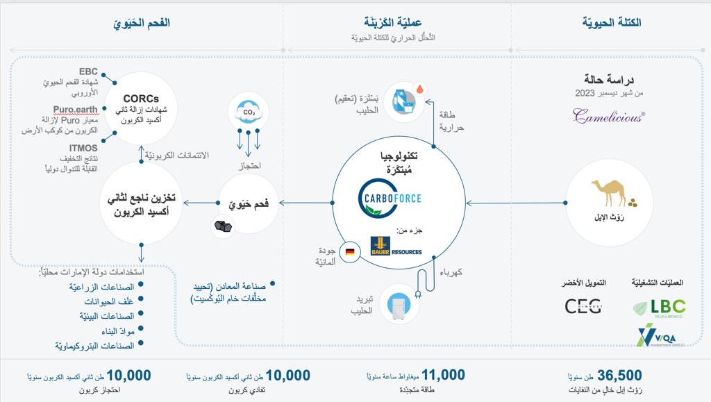 أعلنت شركة فيكا للاستثمار الألمانية عن التعاون مع مصنع الامارات لإنتاج حليب الإبل ومشتقاته (Camelicious)، للبدء في انتاج الفحم الحيوي الصناعي باستخدام مخلفات الإبل.