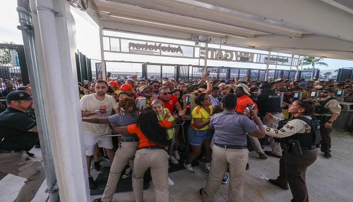 وتأخر انطلاق المباراة النهائية التي أقيمت في ملعب “هارد روك” بمدينة ميامي الأمريكية، لأكثر من ساعة بسبب قيام مجموعات من مشجعي منتخب كولومبيا، بالقفز فوق الحواجز الأمنية بالقرب من المدخل الجنوبي الغربي لملعب المباراة، في محاولة للدخول دون تذاكر.