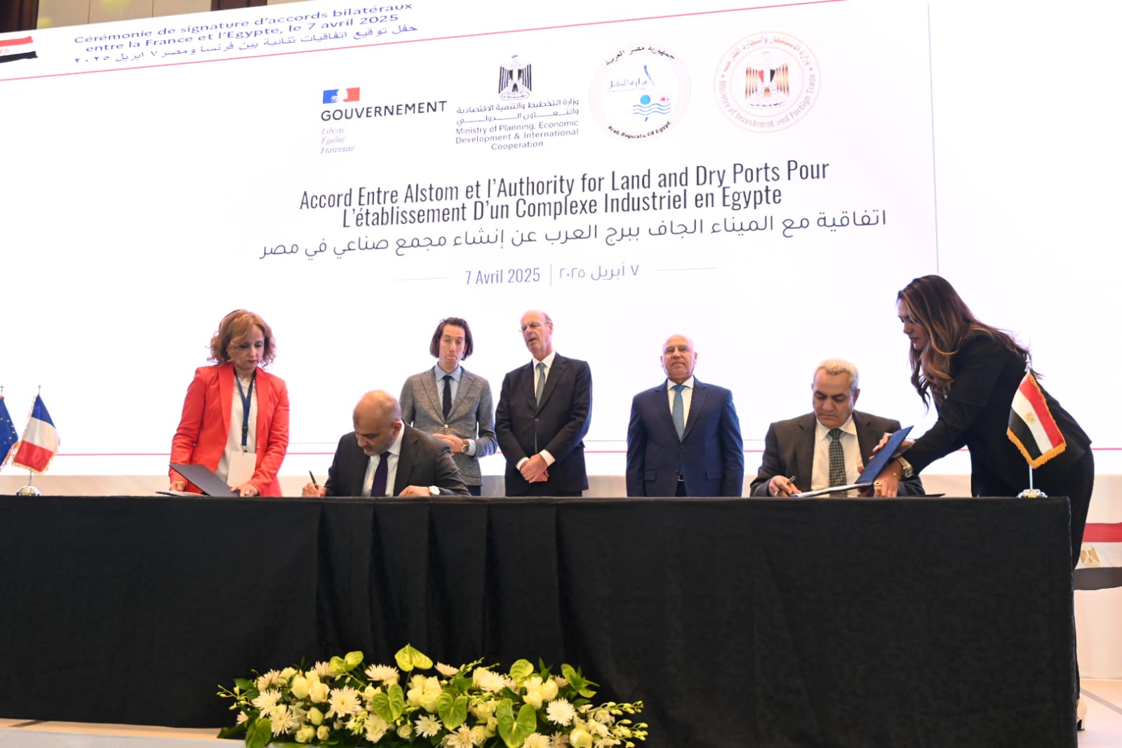 شهد الفريق مهندس كامل الوزير نائب رئيس مجلس الوزراء للتنمية الصناعية وزير الصناعة والنقل و إريك لومبار وزير الاقتصاد والمالية والسيادة الصناعية والرقمية الفرنسي وبحضور أندى دلون، نائب رئيس شركة ألستوم الفرنسية توقيع عقد حق الانتفاع لقطعه ارض مساحة 40 فدان بين الهيئة العامة للموانئ البرية والجافة وشركه الستوم الفرنسية لانشاء مجمع صناعى لانتاج الوحدات المتحركة ومدخلات انتاج الأنظمة الكهربائية ومكونات السكك الحديدية ( إشارات – مكونات – لوحات ودوائر كهربائية للتحكم – ضفائر كهربائية……الخ ) وبعض مهمات البنية التحتية و حيث يستهدف المصنع الاول والذى سيقام على مساحة 13 فدان انتاج الأنظمة الكهربائية ومكونات السكك الحديدية ( إشارات – مكونات – لوحات ودوائر كهربائية للتحكم – ضفائر كهربائية……الخ ) كما يستهدف المصنع الثاني إنتاج كافة أنواع الوحدات المتحركة (LRT- – مونوريل – قطار سريع …الخ) وحيث قام بالتوقيع المهندس / سيد متولي، الهيئة العامة للموانئ البرية والجافة والسيد /رامي صلاح الدين، رئيس شركة الستوم مصر.