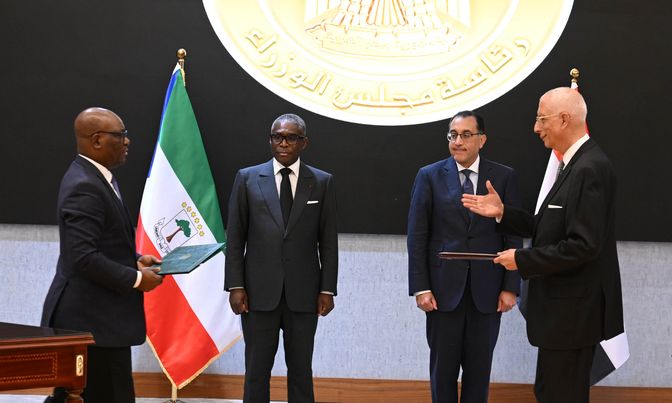 شهد الدكتور مصطفى مدبولي، رئيس مجلس الوزراء، وتيدورو أوبيانج مانجُوي، نائب رئيس جمهورية غينيا الاستوائية، توقيع مُذكرة تفاهم بين معهد الدراسات الدبلوماسية بوزارة الخارجية، في جمهورية مصر العربية، ووزارة الخارجية والتعاون الدولي والشتات، في جمهورية غينيا الاستوائية.