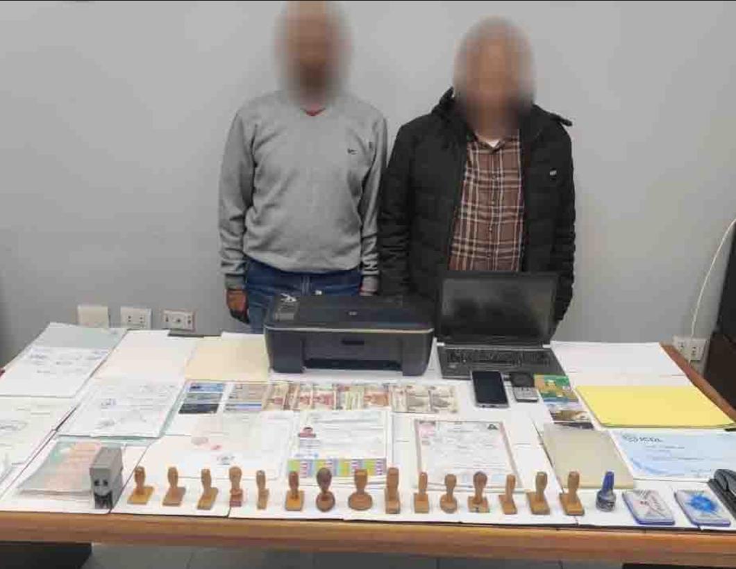 عقب تقنين الإجراءات تم ضبطهما، وبحوزتهما (17 أكلاشيه بأسماء “جهات مختلفة” – جهازين كمبيوتر محمول “لاب توب” يحويان أدلة تُشير إلى نشاطهما الإجرامى – أوراق و شهادات ومستندات مزورة – مجموعة من الخامات التى تُستخدم فـى نشاطهما – مبلغ مالى “متحصلات نشاطهما الإجرامى”).