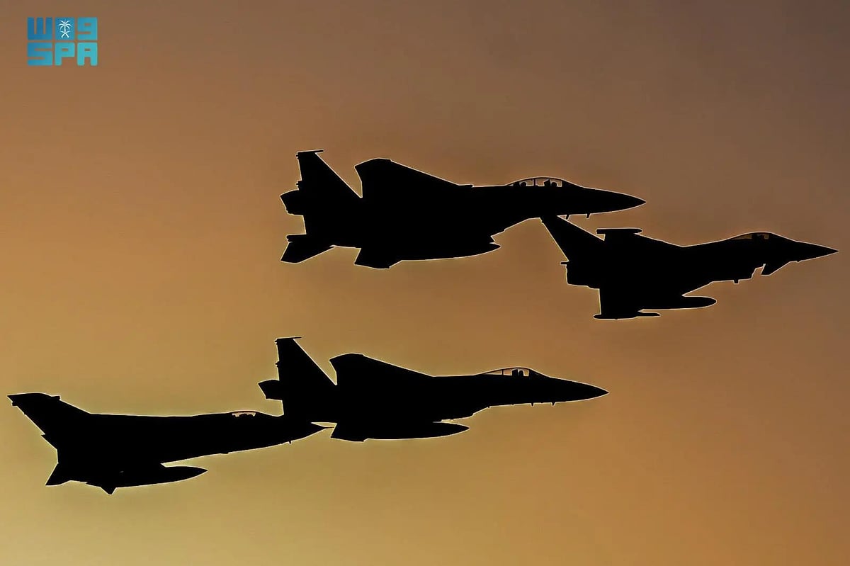 واستعرضت المقاتلات من نوع تايفون، تورنيدو، ف-15 سي، ف-15 إس إيه، التي تزينت باللون الأزرق الغامق وتوشحت بنقوش هندسية مستوحاة من التراث الوطني، إلى جانب شعار السيفين والنخلة ورقم (95) الذي يرمز للذكرى الخامسة والتسعين لتوحيد المملكة، وسط حضور كثيف من الأهالي والزوار الذين تفاعلوا مع العروض وهم يحملون الأعلام السعودية والأوشحة اعتزازًا بالوطن.