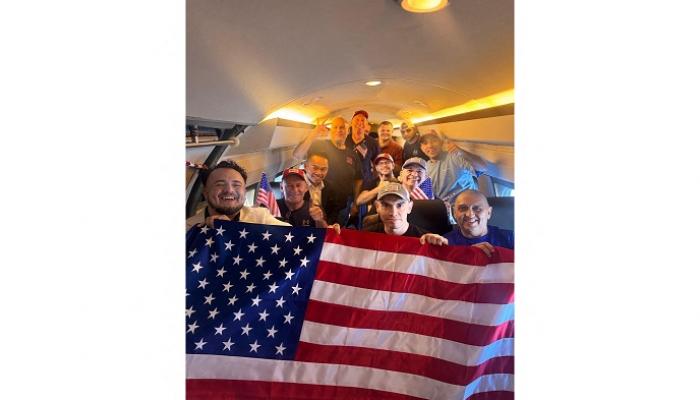 ونشرت الخارجية الأمريكية على مواقع التواصل الاجتماعي صورة للأمريكيين العشرة المفرج عنهم من السجون الفنزويلية وهم يحملون علما أمريكيا.