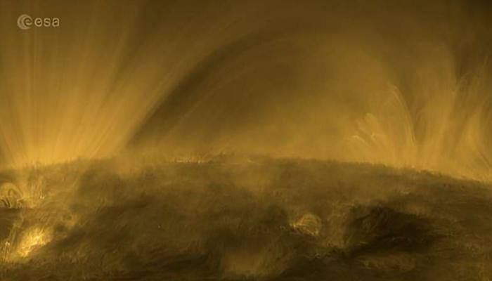 ويعرض الفيديو الذي نشرته وكالة الفضاء الأوروبية، هياكل بلازما ريشية تشبه الشعر، تتتبع خطوط المجال المغناطيسي، مما يعطي الشمس مظهر رقيقًا.