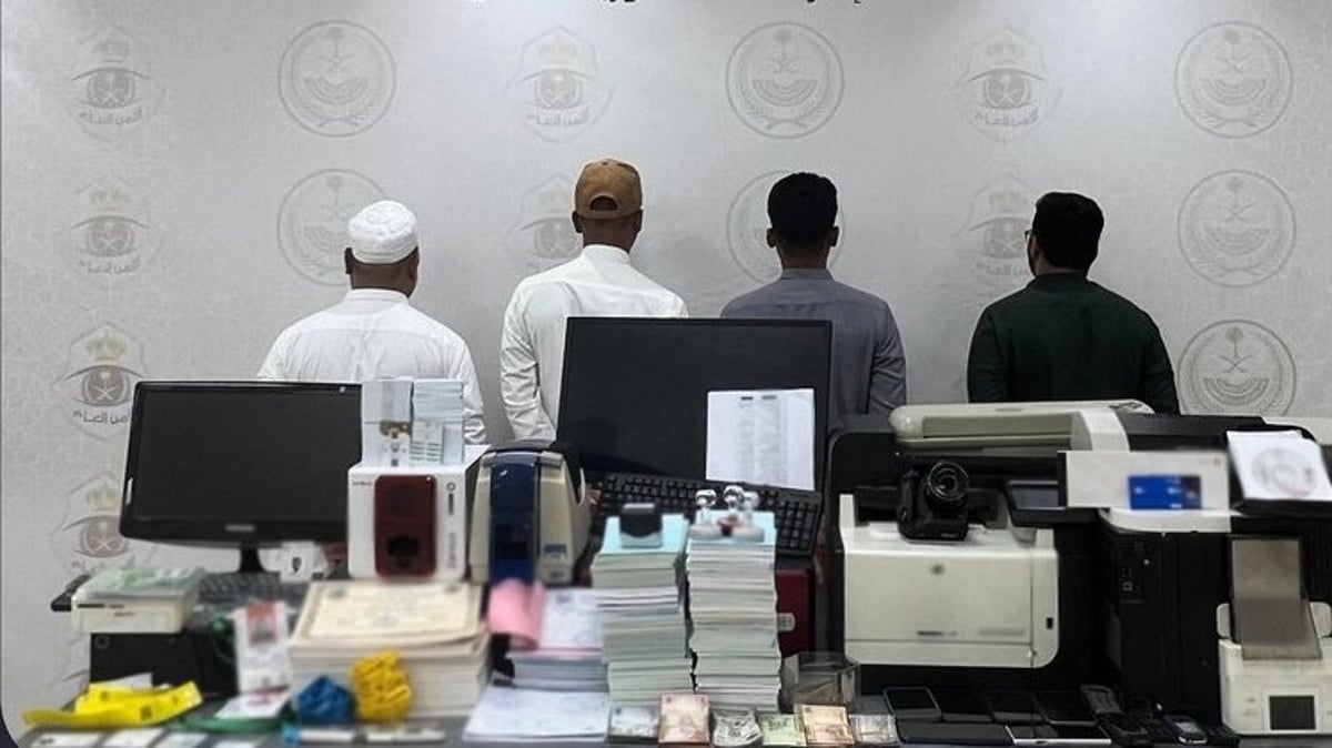 وأضافت بأنه ضُبط بحوزتهم مبالغ مالية وأختام وهواتف متنقلة وأجهزة حاسوب، وجرى إيقافهم، واتخاذ الإجراءات النظامية بحقهم، وإحالتهم إلى النيابة العامة.