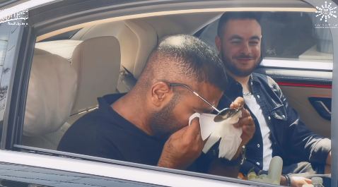 ظهر الفنان أحمد سعد في السيارة يمازح الجمهور ويبكي، تمهيدًا لحفل ليلة الدموع، حيث استقبله منظمي الحفل في المطار.