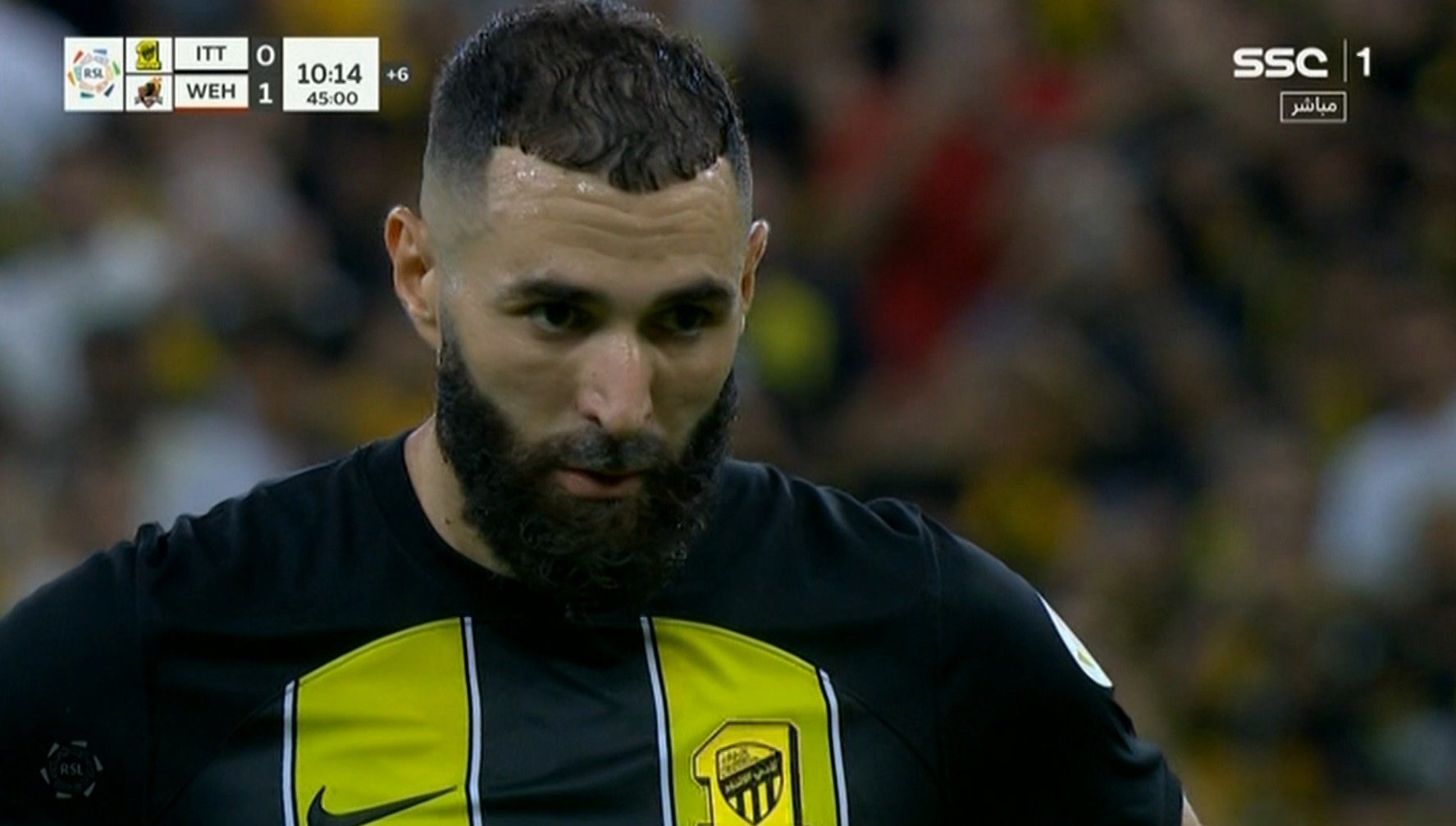 كريم بنزيما يهدر ركلة جزاء امام الوحد يتصدي لها منير المحمدي