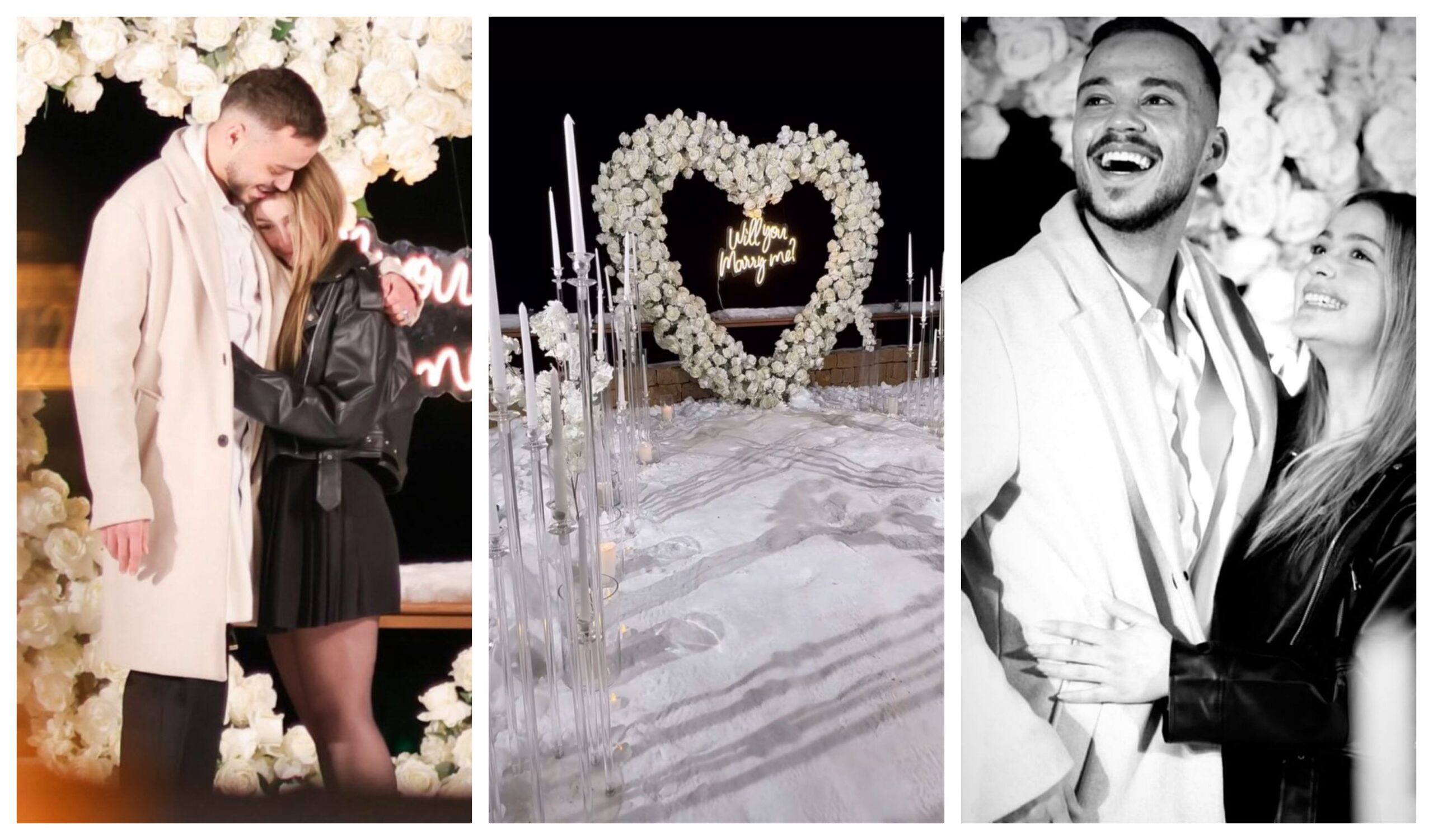 وفاجأها بقلب مصنوع من الورود البيضاء، كتب في نصفه «هل تتزوجيني؟»، ونشر صورة رومانسية تجمعهما.