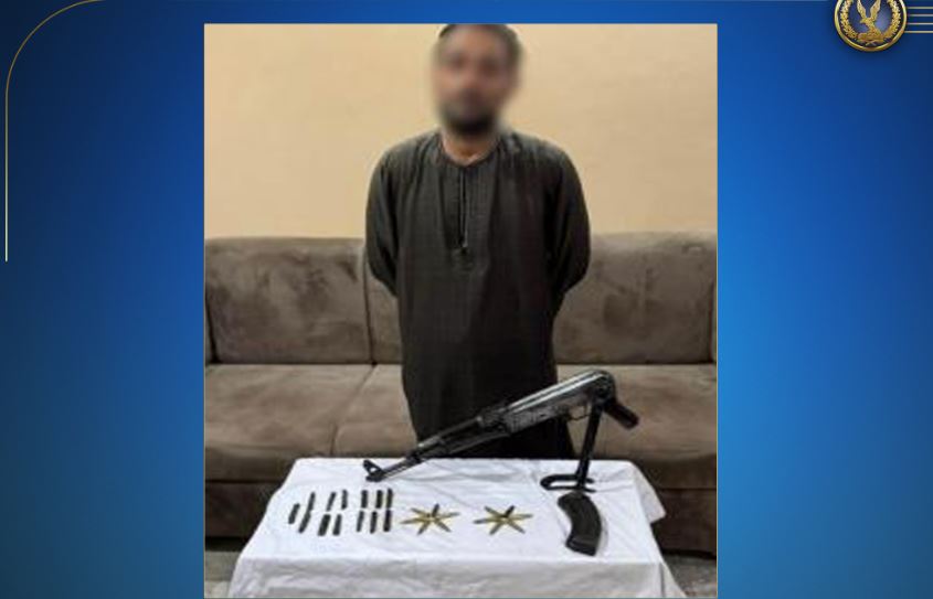 وعُثر بحوزته على بندقية آلية وكمية من مخدر الحشيش، وتم اتخاذ الإجراءات القانونية اللازمة.