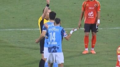أشهر الحكم الهولندي داني ماكيلي البطاقة الحمراء لمهندي لاشين لاعب بيراميدز أمام الأهلي في الدقيقة 57 من عمر المباراة التي…