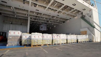 ضمن عملية “الفارس الشهم 3”.. سفينة حمدان الإنسانية تصل إلى ميناء العريش دعماً للشعب الفلسطيني